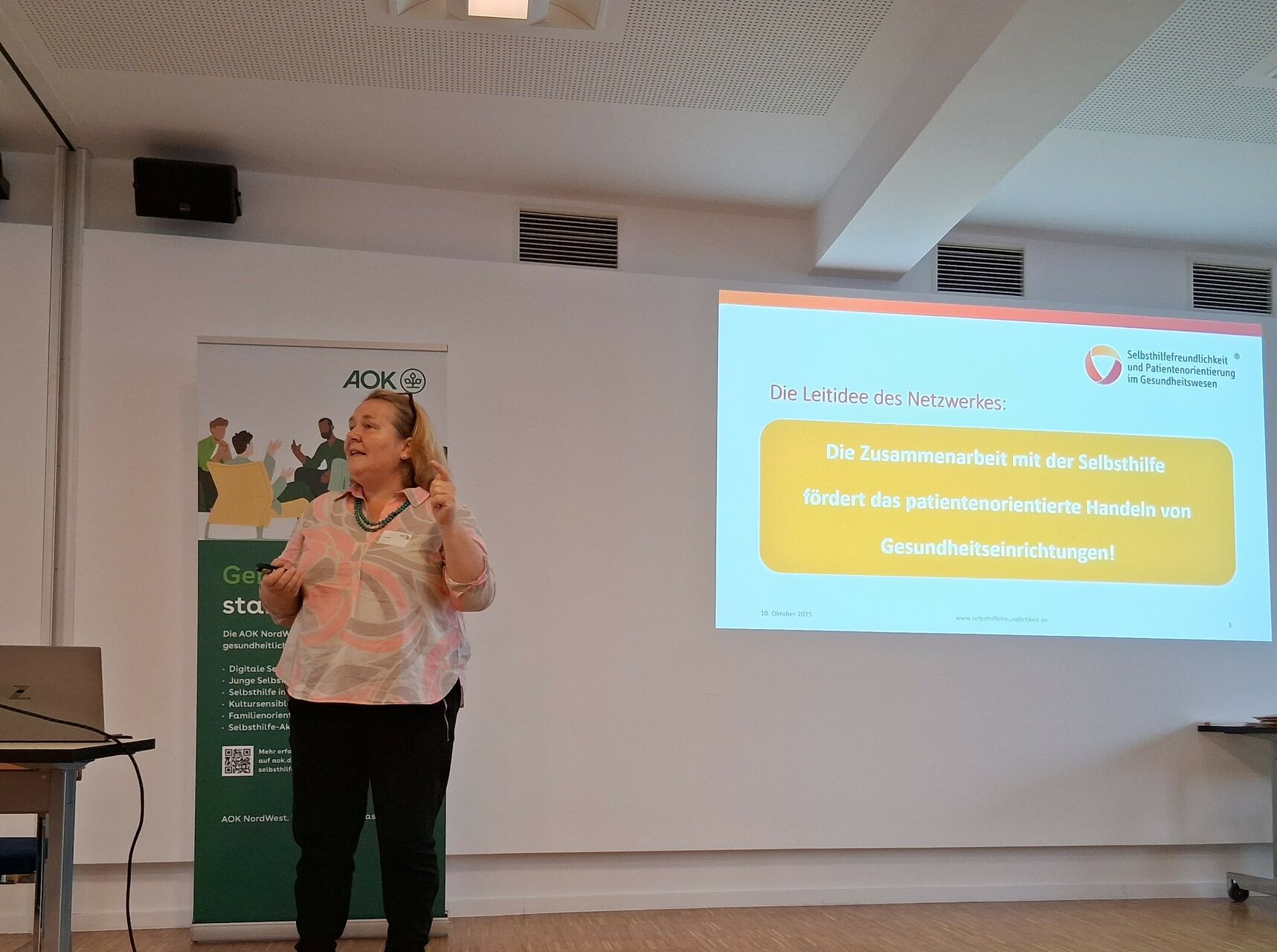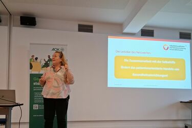Ines Krahn stellte in ihrem Vortrag „Kooperationen mit der Selbsthilfe in Gesundheitseinrichtungen“ das Netzwerk vor und unterstrich das große Potenzial von Kooperationen: