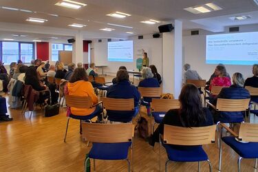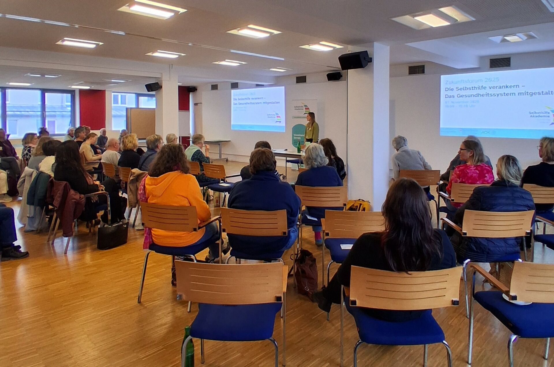 Von Beginn an war die Atmosphäre offen und lebendig: Fachkräfte aus dem Gesundheitswesen, Selbsthilfe-Aktive aus Gruppen, Kontaktstellen und Organisationen sowie Interessierte kamen zusammen, um sich auszutauschen, mit- und voneinander zu lernen und die Zukunft der Selbsthilfe zu gestalten. Neben bekannten Gesichtern waren auch viele neue Teilnehmende dabei – ein schönes Zeichen dafür, dass das Thema Menschen bewegt.