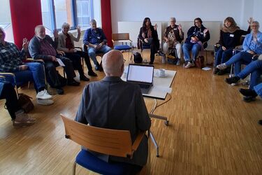 Im Workshop mit dem Kommunikationsexperten Dr. Hartwig Eckert arbeiteten die Teilnehmenden an ihrer Außenwirkung. Denn Aktive in der Selbsthilfe vertreten nicht nur ihre eigenen Anliegen, sondern sind zugleich Multiplikator*innen für die Selbsthilfe und ein wichtiges Sprachrohr auf verschiedenen Ebenen. Im Workshop standen daher die eigene Stimme und das persönliche Auftreten im Vordergrund. Welche Wirkung habe ich – wie klingt meine Stimme und wie kommt das, was ich sage, bei anderen an? Und wie gelingt es, die eigene Stimme auch in aufgeregten Situationen zu halten? Die Teilnehmenden konnten praktische Erfahrungen sammeln und von offenem, wertschätzendem Feedback untereinander profitieren.