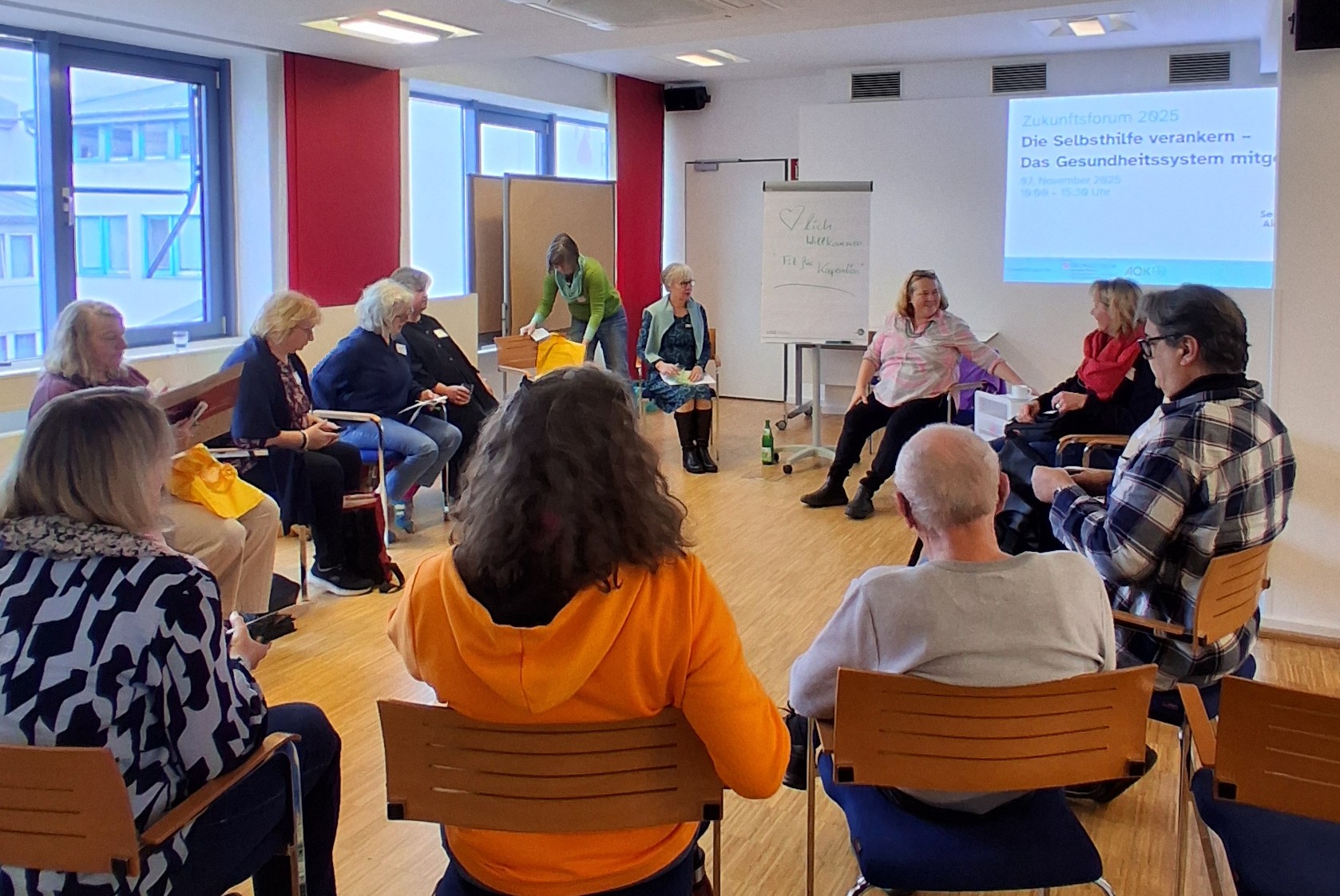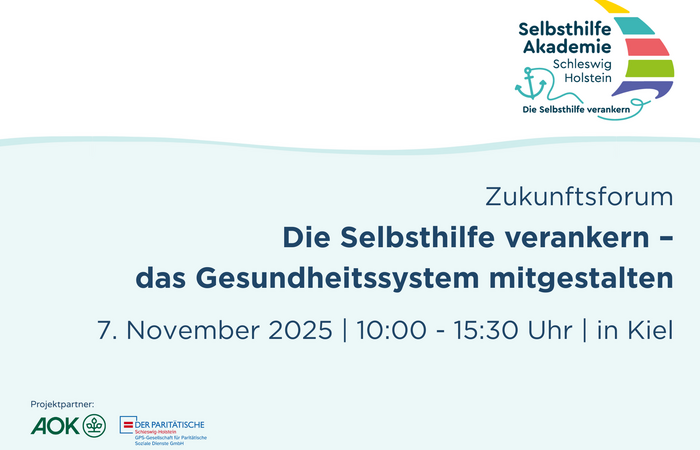 Wie lässt sich die Selbsthilfe stärker im Gesundheitswesen verankern? Wo und wie kann noch deutlicher auf die Selbsthilfe verwiesen werden und welchen Beitrag können die verschiedenen Ebenen der Selbsthilfe dazu leisten? Mit diesen und vielen weiteren Fragen beschäftigten sich am 7. November rund 45 Teilnehmende beim Zukunftsforum 2025 in Kiel. Eingeladen hatten die Selbsthilfe-Akademie Schleswig-Holstein sowie die Projektpartner*innen der AOK NordWest und der PARITÄTISCHE Schleswig-Holstein.